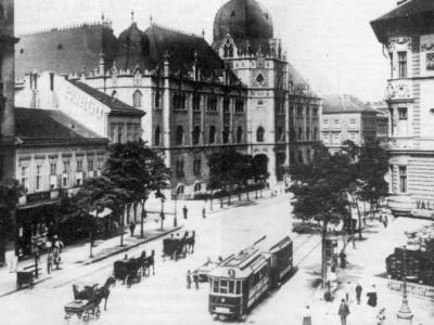 Az Üllői útnak az Iparművészeti Múzeum és a Ferenc körút közötti szakaszán állt 39., 41., 43. számok alatti házai (a díszes tetőzetű, emeletes sarokház a 43.). A kezdő képek elkészültének ideje pontosan beazonosítható: 1897. Ebben az évben villamosították az Üllői út korábbi lóvasútját, illetve ennek az évnek a végén húnyt el a képet készítő Divald Károly. A kép jobboldalán - a József körúti sarkon - látható Valéria kávéház 1890-től működött.