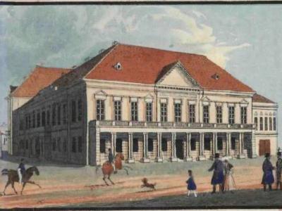 A budavári hajdani katonai szertár (Zeughaus) és karmelita templom (később Várszínház) közötti korábbi laktanya telke 1803-ban került a Sándor grófi család tulajdonába. Az itt, 1803 és 1806 között, Pollack Mihály és Johann Aman tervei alapján épült, klasszicista stílusú palotában született 1805-ben Sándor Móric, az „ördöglovas”. Ő mint a család utolsó férfi tagja 1831-ben a palotát eladta a Pallavicini családnak. Az 1848–49-es forradalom és szabadságharc leverését  és Haynau katonai parancsnokságát követően a polgári és katonai kormányzónak kinevezett Albert (Albrecht)  főherceg rezidenciája lett az épület (1851-1856 között).