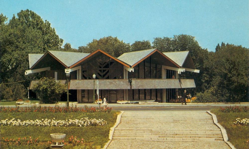 "Az 1912-ben épült KIOSZK helyén 1977-re épült fel Horváth Andor és munkatársainak tervei alapján az ún. Jereván KIOSZK. Az emeletes épült Győr egy kiemelt helyén, a Radó Szigeten, a kettős híd útja mellett helyezkedik el. A sokszög alaprajzú ház árnyékolt üveghomlokzata minden irányba szép kilátást enged. Hol a történeti várost látjuk, hol a Mosoni-Dunát, hol a sziget zöldjét. Az eredeti funkció szerint alul cukrászda, ételbár és a kiszolgáló helyiségek, felül presszó és “éjszakai mulató” helyezkedett el. Az épület vegyes szerkezettel épült. A határolószerkezet fa osztású függönyfal, a közbenső födém monolit szerkezetű vasbeton, a tetőfödém gerendái előregyártott vasbeton elemek (nyersen, fehérre festve) fa gerendákkal. A belsőben is ezek az anyagok érvényesültek, kiegészítve klinkertégla burkolattal. Mára az eredeti térszerkezetet jelentősen átalakították, alul étterem helyezkedik el, felül (egy rátett központi elemmel kiegészítve) hotel üzemel. Az eredeti belső kialakításból mára semmi nem maradt." F: moderngyor.com