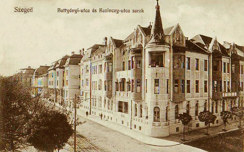 Bár egy kerek sarkú épület van a Kazinczy és Dózsa utca sarkánál.