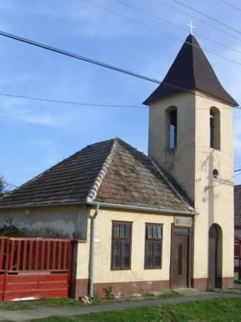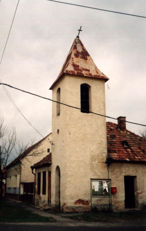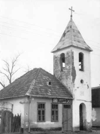A képeken látható épületegyüttes elsőként elkészült része a harangláb volt. Ennek építésére 1870-ben tettek alapítványt Varga Gábor és neje, Gáncs Julianna molnári lakosok. A következő év tavaszán - kertjük sarkában - felépült a ma is álló harangláb. Az 1950-es években ezt - talán a vallás- és egyházellenes törekvésekkel összhangban - tűztoronyként említették.